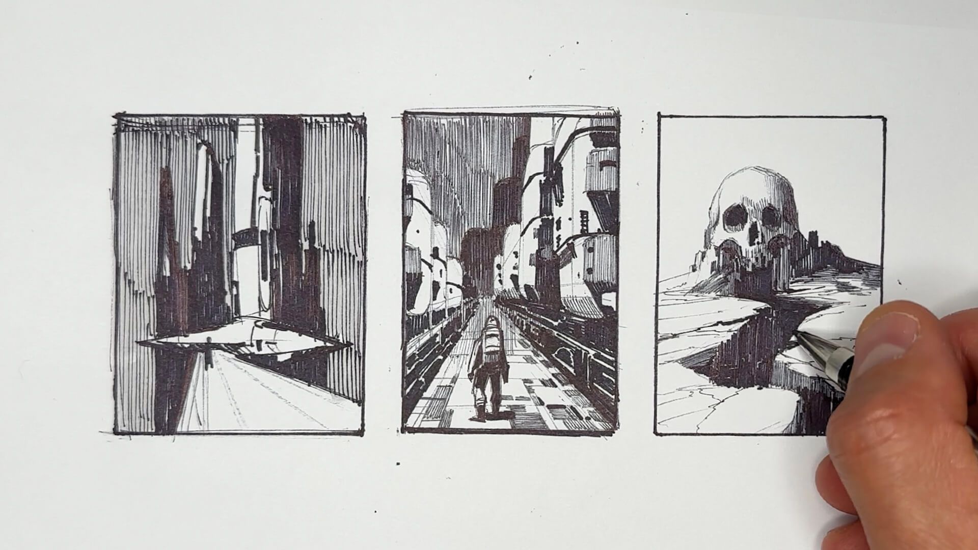 Discover the foundations of traditional ink sketching with concept artist Aaron Limonick. You’ll explore core techniques like hatching, stippling, layered values, ink-and-water gradients, and mixed-media combinations through a series of small, practical drawing exercises that quickly build skill and intuition. Along the way, Aaron teaches you how to analyze value, use perspective purposefully, and bring clarity to your compositions. By the end you’ll have several finished sketches, as well as the confidence to use a range of styles and ink-based tools. You’ll also get a simple materials guide covering the the pens, papers, and tools Aaron recommends.